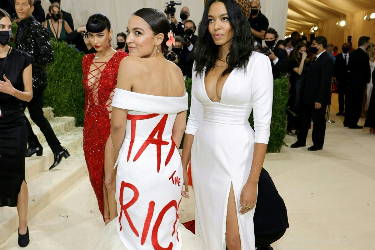 Alexandria Ocasio Cortez wore a dress adorned with the words tax the rich to the 30000 per ticket Met Gala on Monday evening.